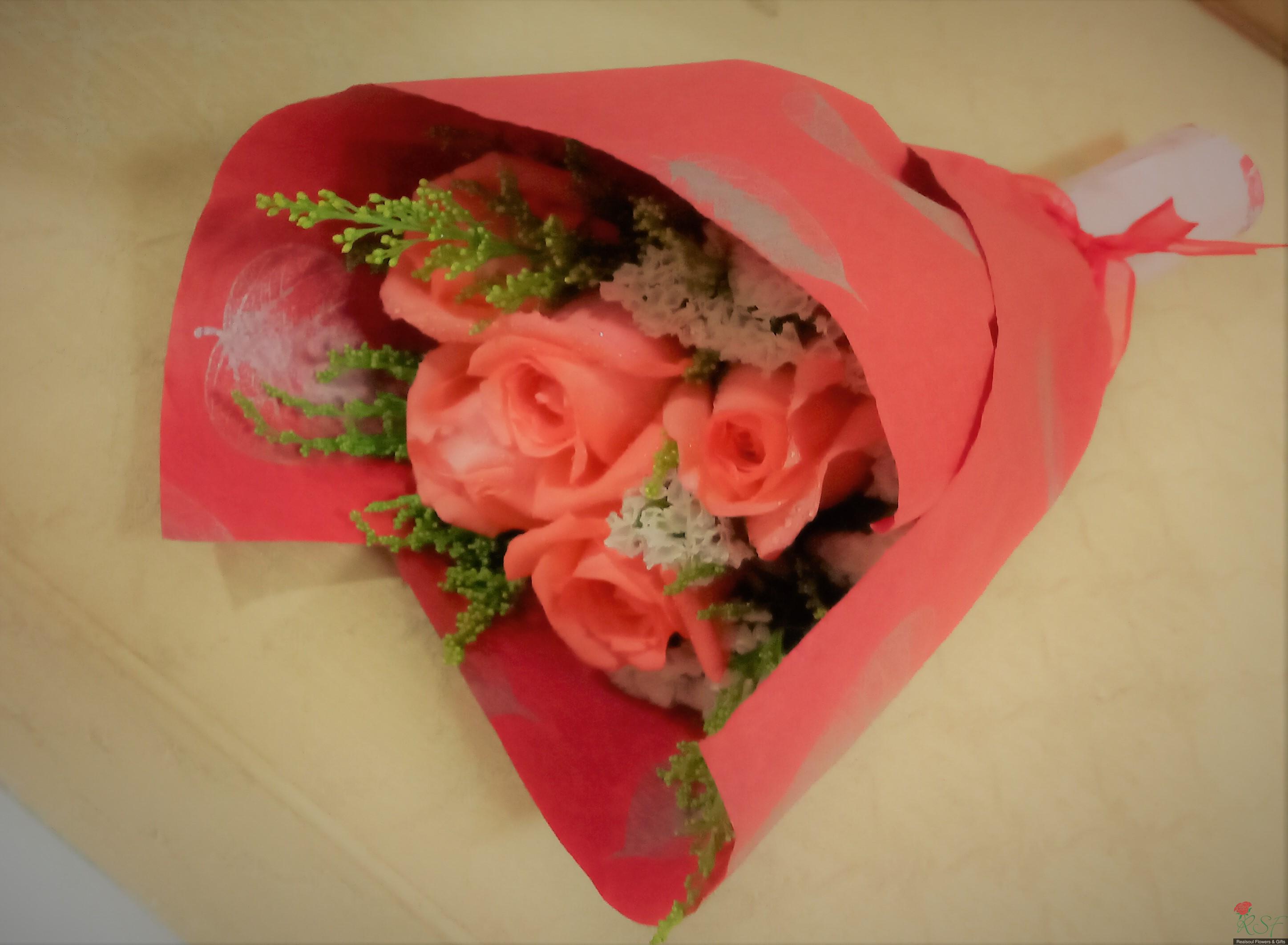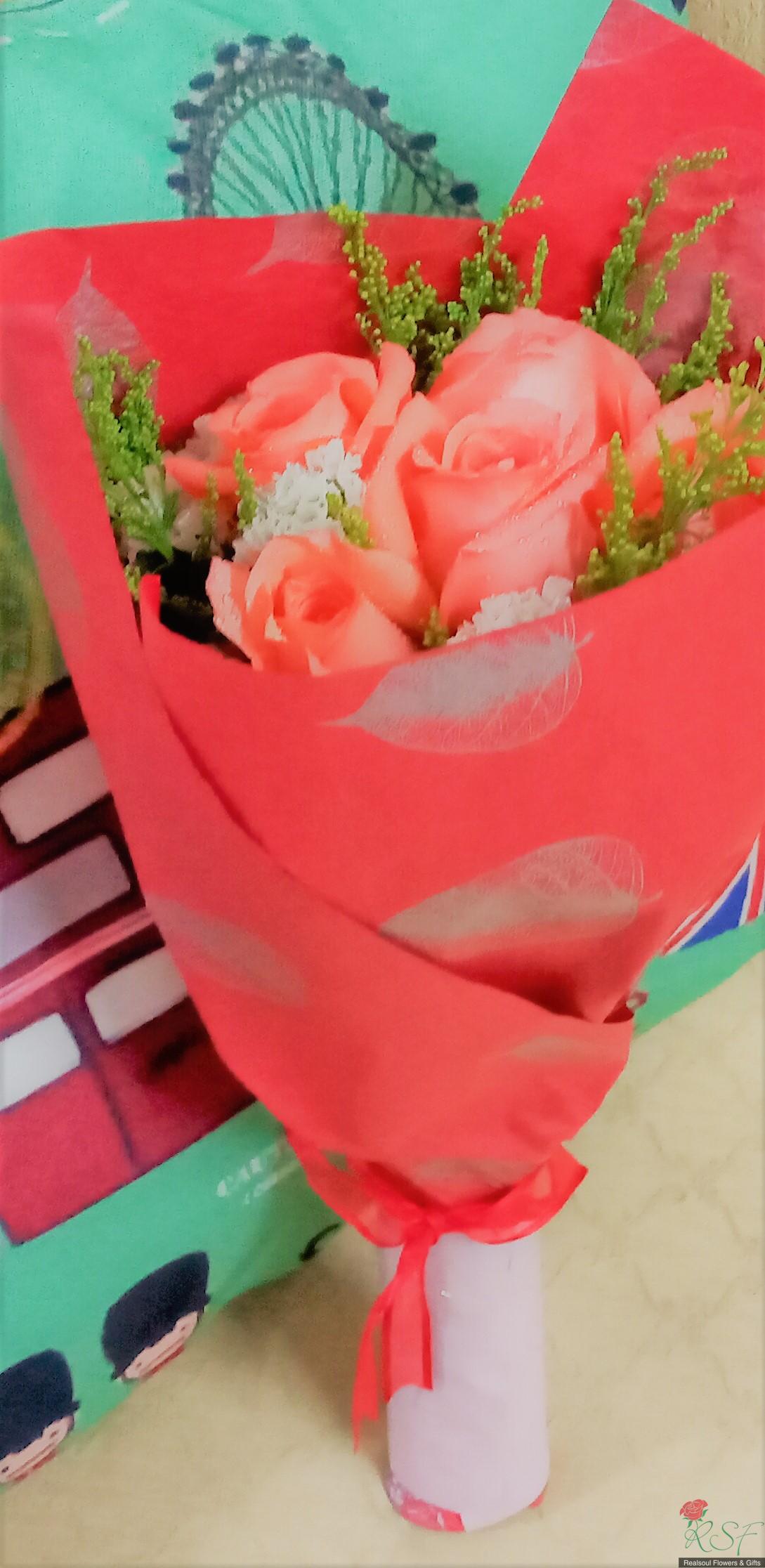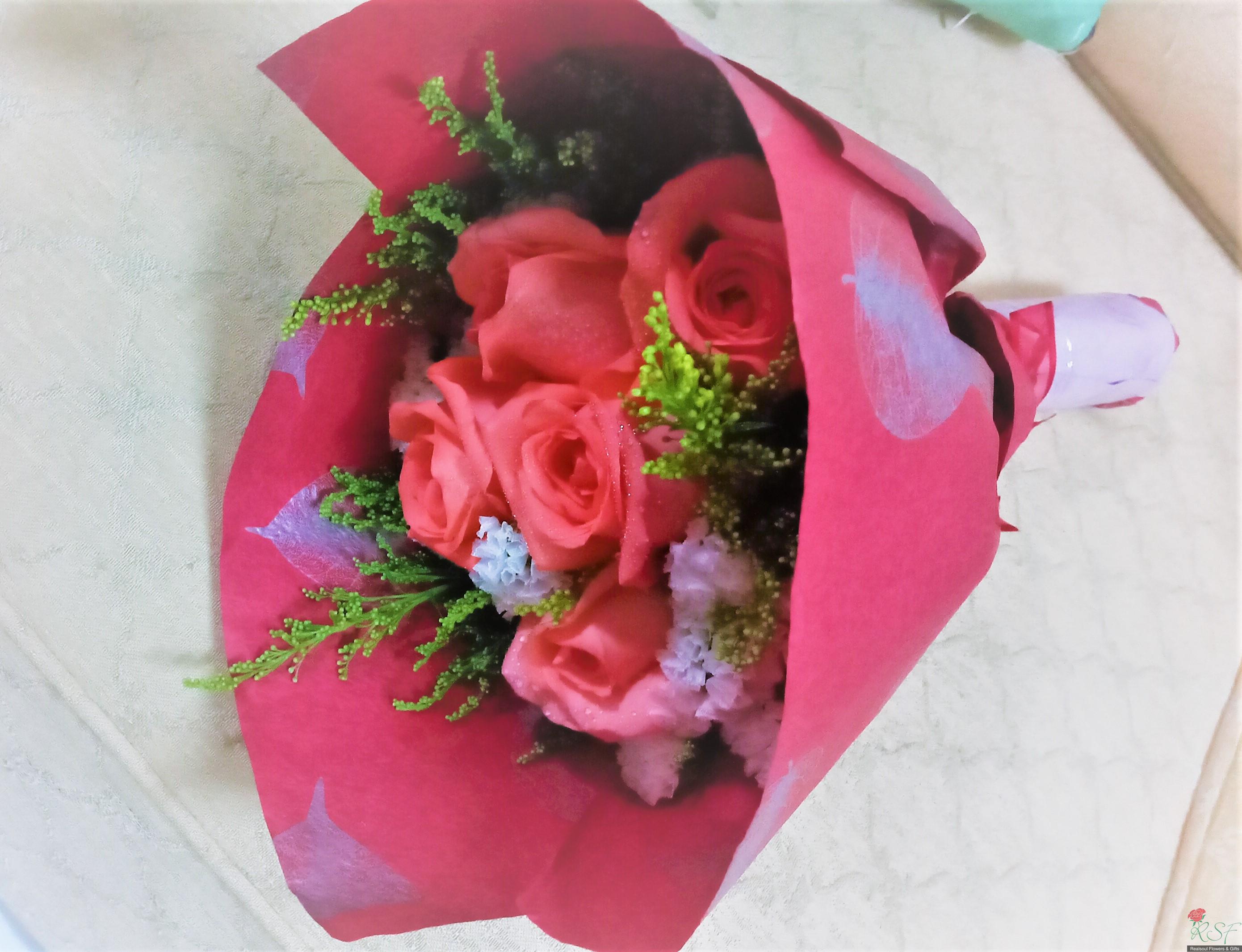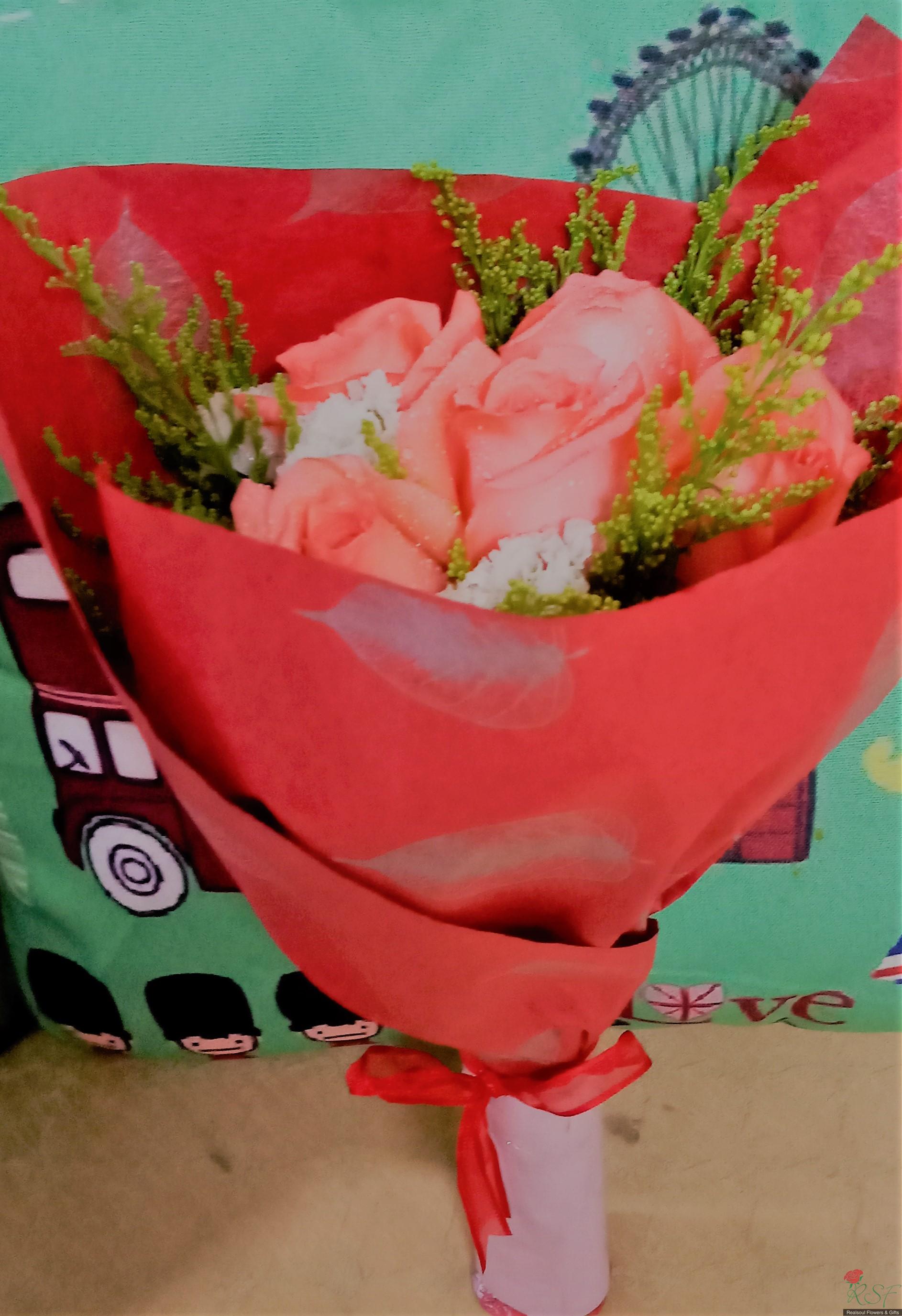 HB076- Simple round wrap 5 blooms roses bouquet/ Bungkusan buket bulat mudah ros 5 kuntum-SHIP WORLDWIDE