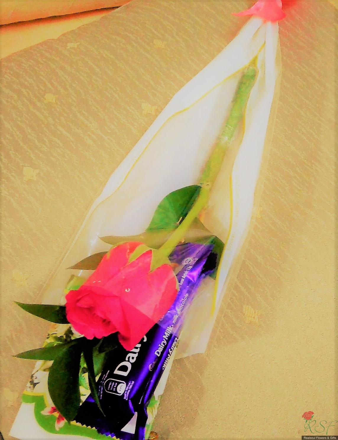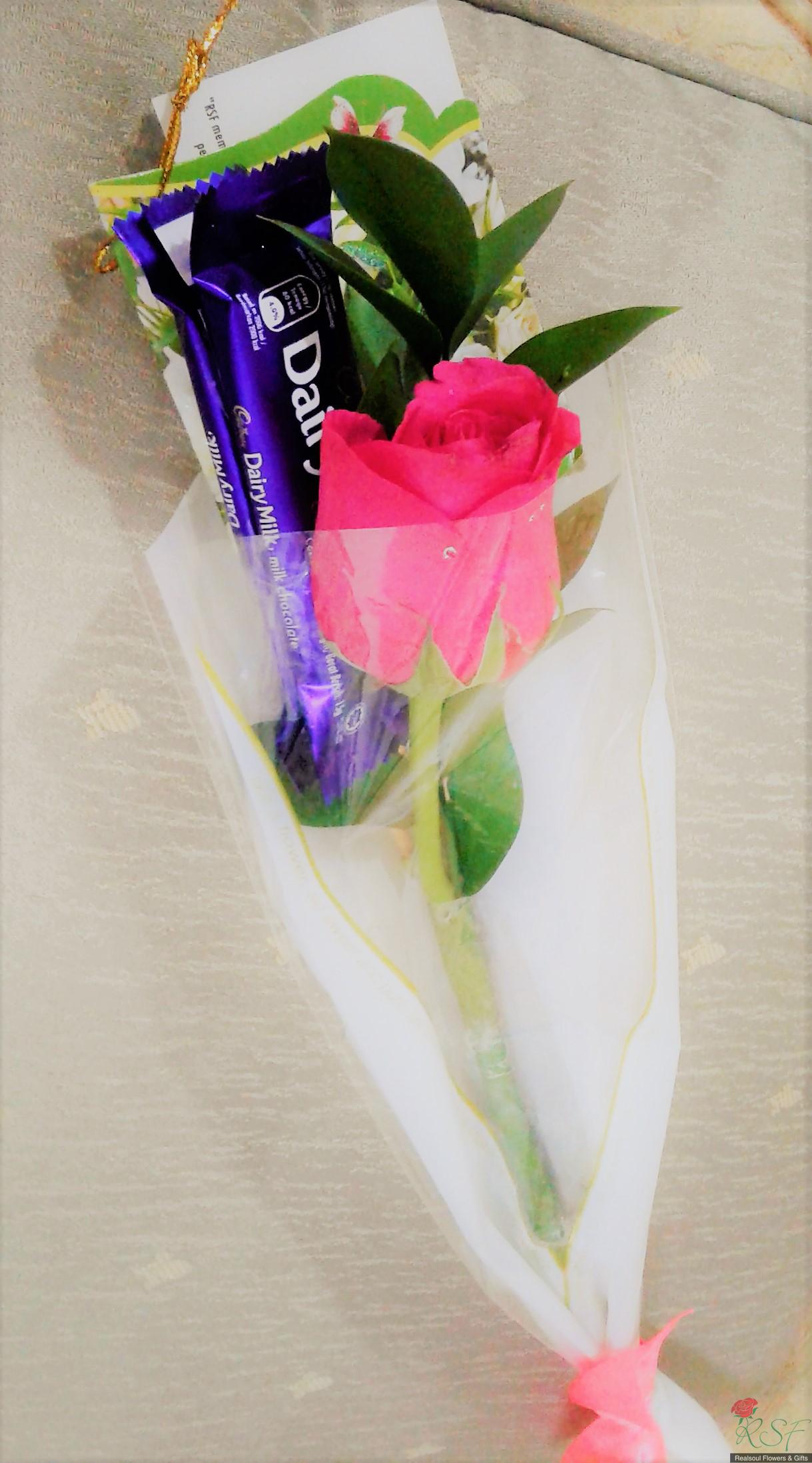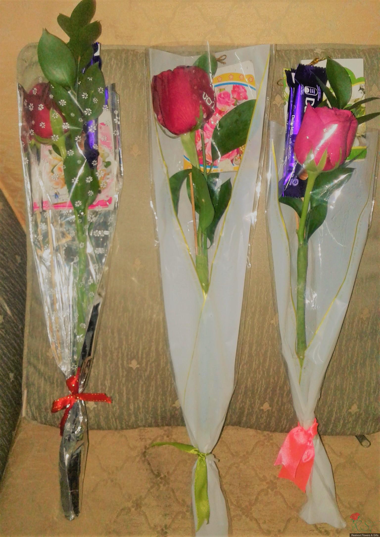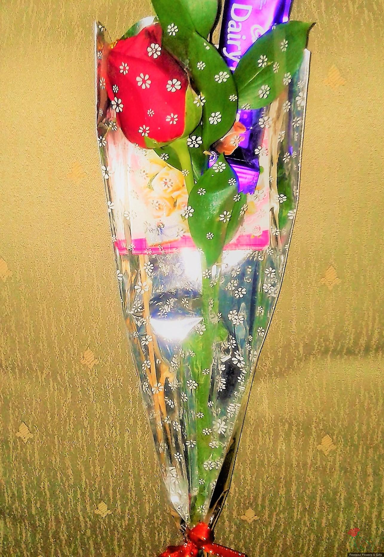 HBDG048- Single rose/carnation bouquet with chocolate bars/sweets as door gifts, min order 5 bouquets (cenderahati sekuntum bunga ros/carnation segar beserta kepingan coklat atau gula-gula) -FREE SHIP IN MALAYSIA/ & TO SING/BRU/INDO/NZ/AUS/UK/USA/CANADA