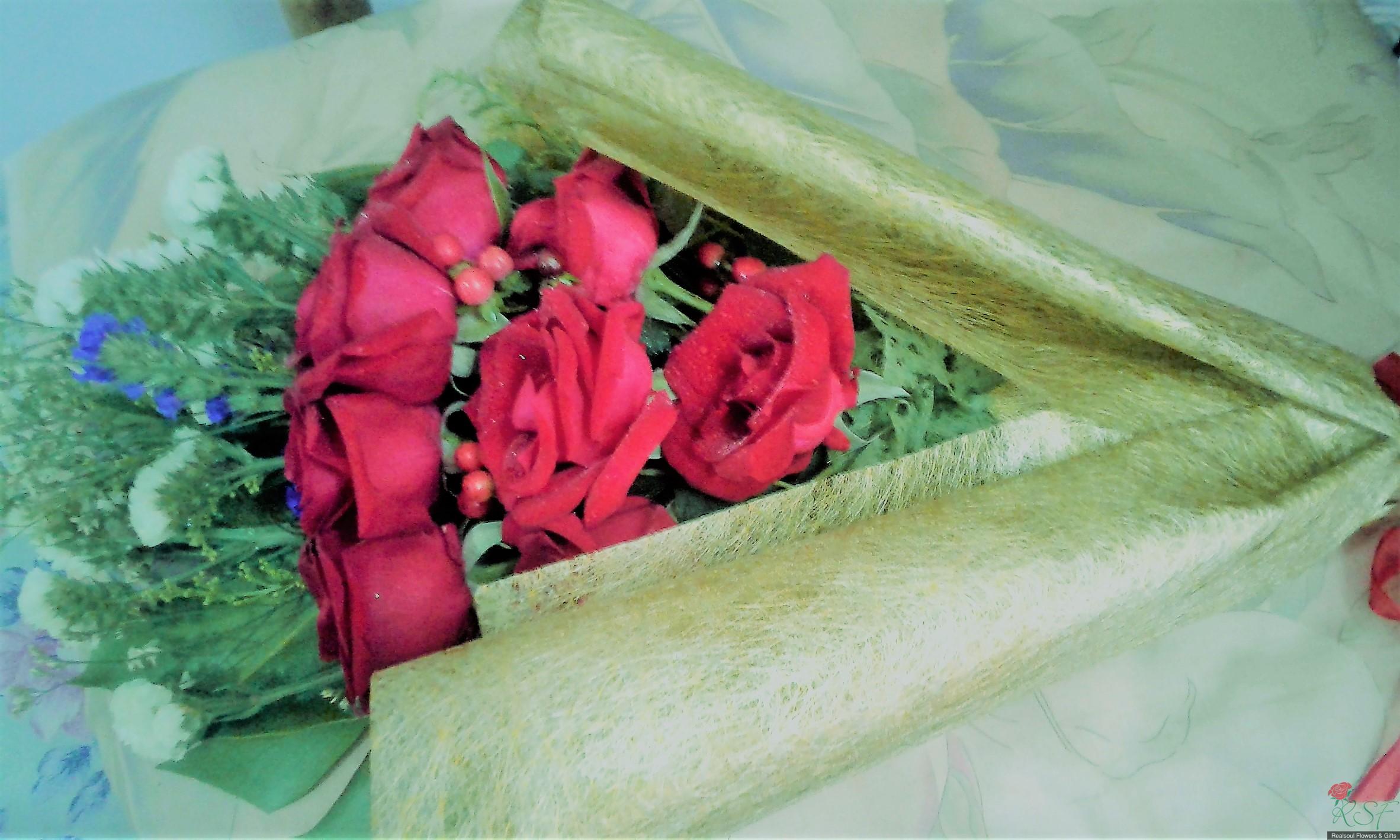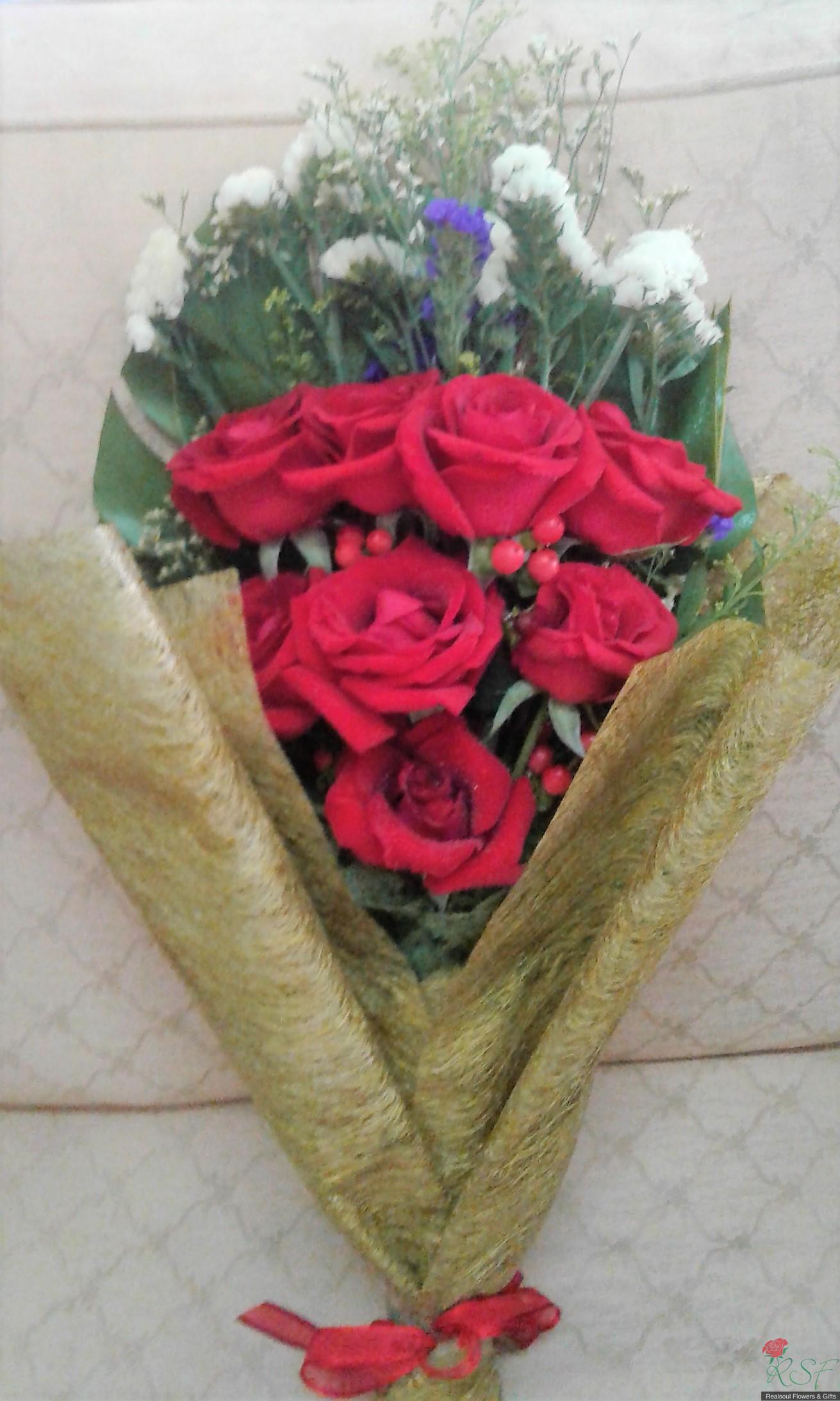Mother/Father/Teacher's Day: This gift consists of a bouquet of 7 to 8 roses and a mini chocolate cake with chocolate icing decor. The cake is between 10-11 cm diameter. Order Now.