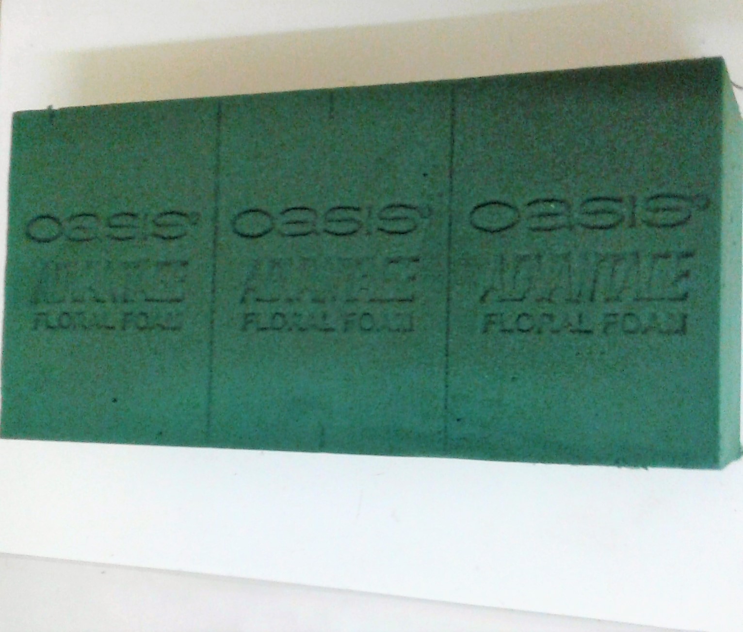 MISCELLANEOUS: Oasis foam for fresh floral arrangement. Size 23 X 11 X 8 cm. Buy 10 or more will eligible for discounts upto 10%.