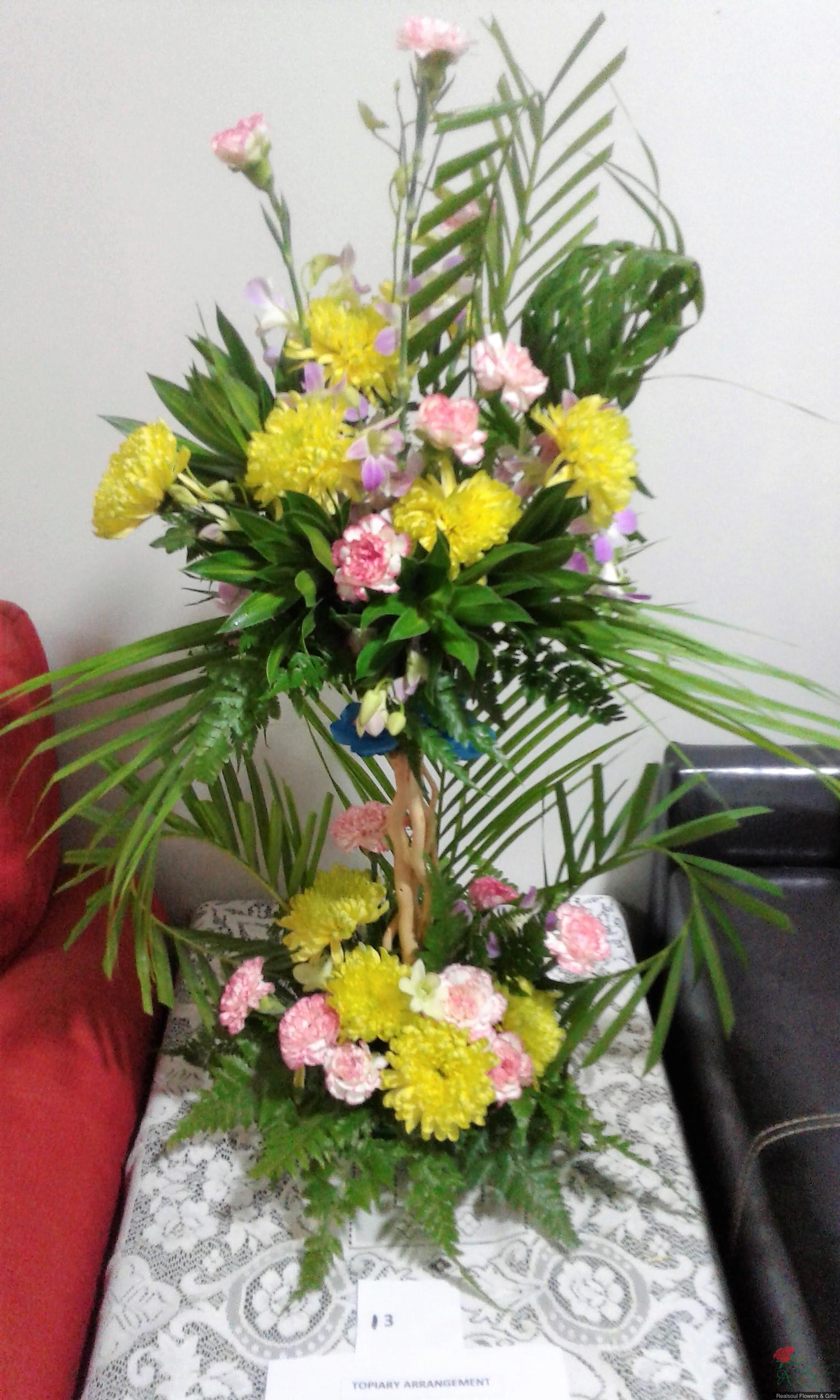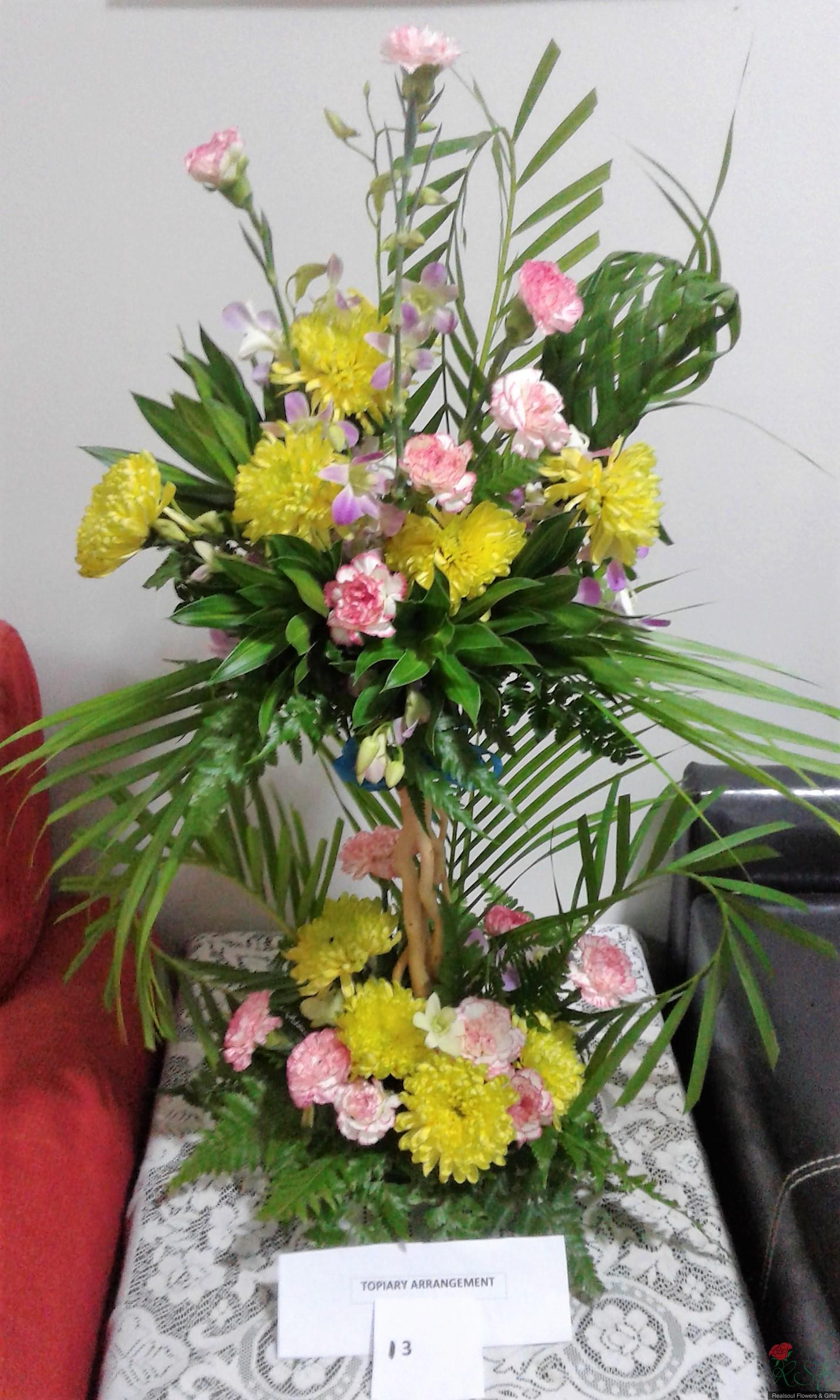 OPCH106- Another topiary style arrangement with tropical elements (Gubahan topiary)