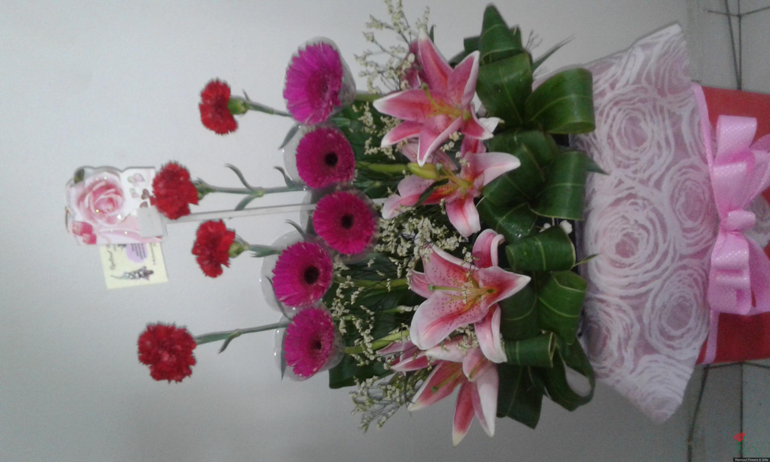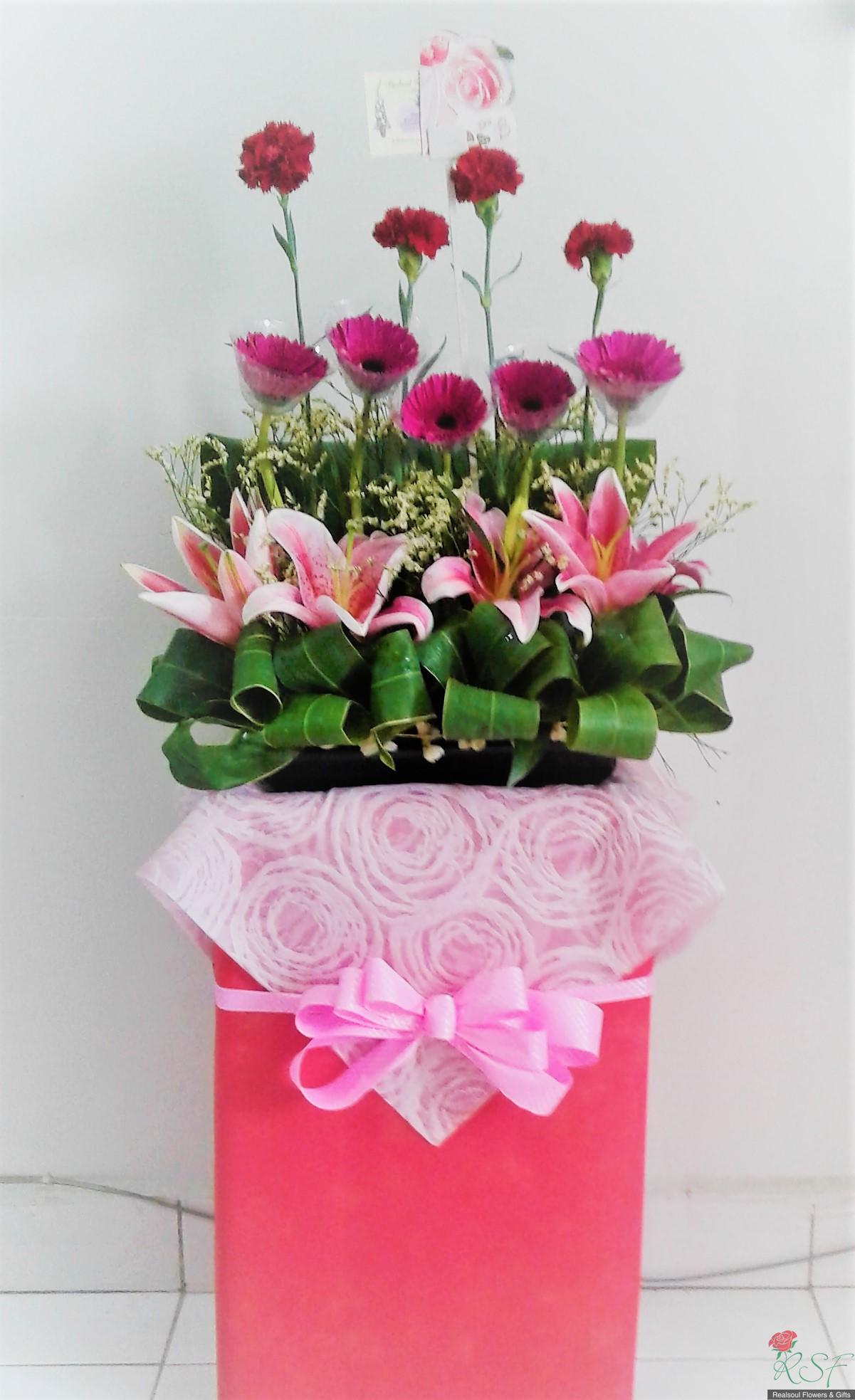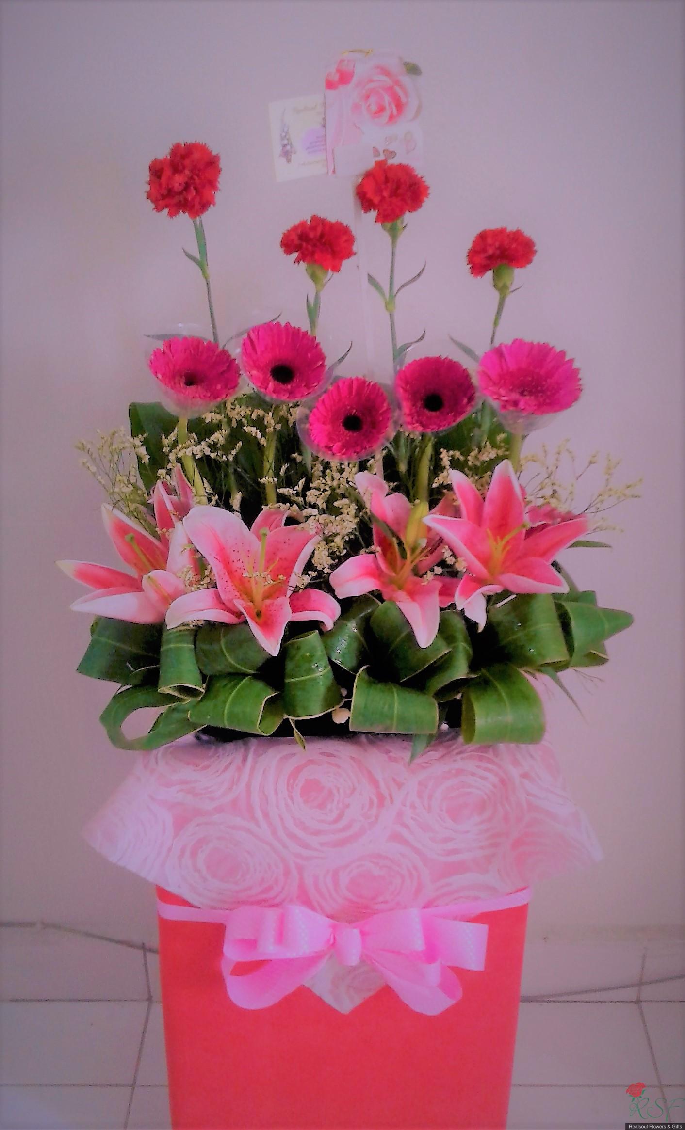 OPCH110- A parallel vertical floral combination of pink colour shades (Gubahan garis guna carnation dan daisi gerbera) SHIP TO MALAYSIA ONLY