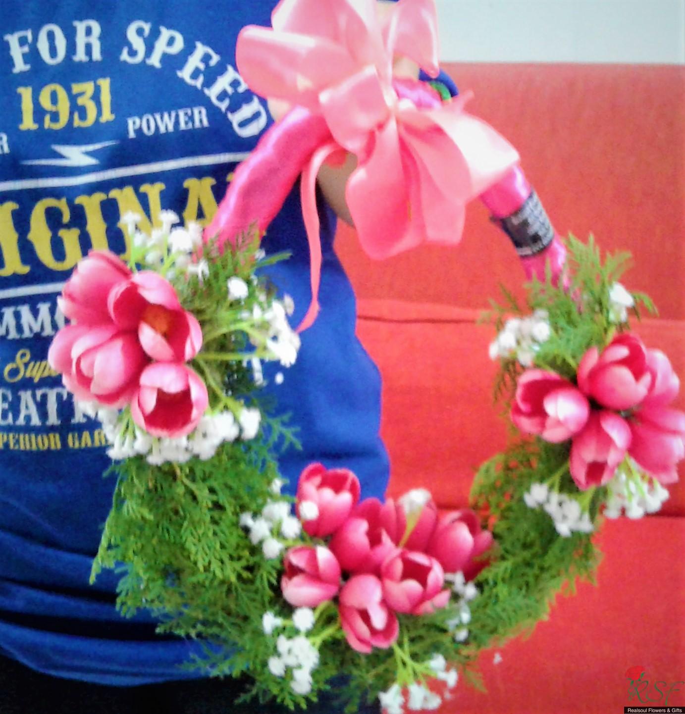 WDHWR107- Lovely wedding hoop/ hand wreath made from both natural & artificial materials/gelung tangan pengantin dari bahan asli & tiruan- SHIP TO MALAYSIA & WORLDWIDE