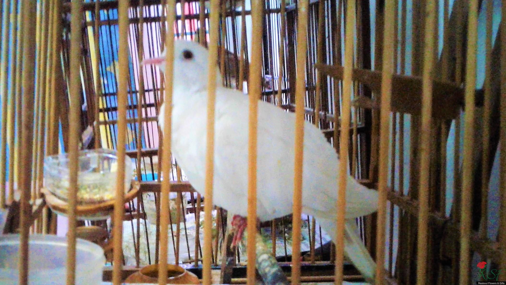 Weddings: Live white doves for release at weddings. Available in pairs. RM 170 per pair, packed in a decorative small cage.