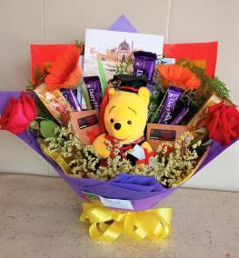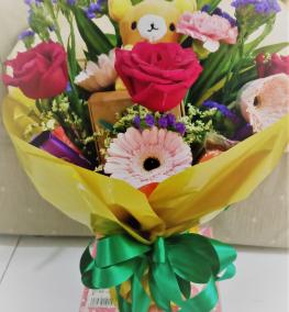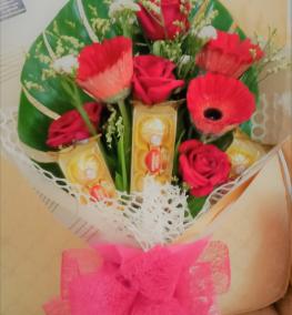 HB069- Floral chocolate anniversary bouquet/ buket ulang tahun. Ship WORLDWIDE-client's review from KPJ Damansara 29 May 2020 "Okay sangat sangat"
