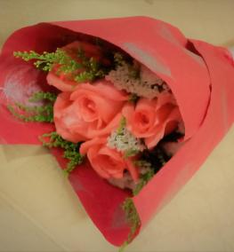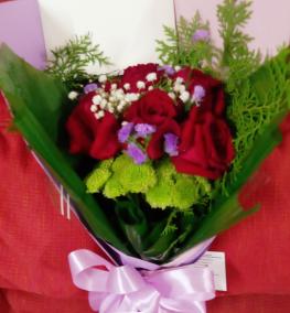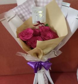 HB076- Simple round wrap 5 blooms roses bouquet/ Bungkusan buket bulat mudah ros 5 kuntum-SHIP WORLDWIDE