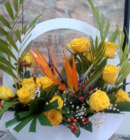 MFTDMD 089- Mother's Day gift of yellow roses in a wooden container (Ros kuning dalam bekas kayu untuk hari ibu) SHIP TO MALAYSIA ONLY
