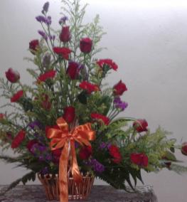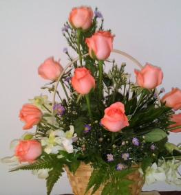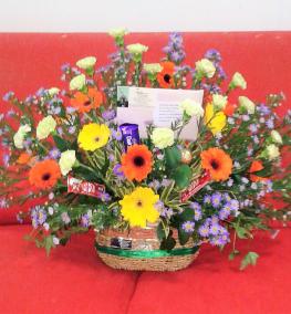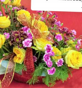 FBS 030- Floral basket for birthdays/anniversaries/Mother's Day-one-sided oval arrangement/bunga dalam bakul ulangtahun/hari lahir dsbnya-Client's remarks from Putrajaya 10.4.2019 "Very beautiful". FREE SHIP TO MALAYSIA/SING/BRU/INDO/NZ/AUS/CANADA
