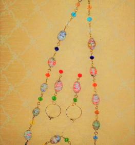 MISCPBJS - Paper bead jewellery set with real preserved rose dyed red as pendant/Set hiasan dari manik kertas & ros asli diawet-SHIP WORLDWIDE