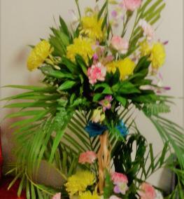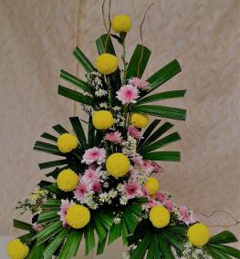 OPCH101- Gives a high spirited affect; arrangement can be placed on a stand (Gubahan dengan kekwa ping pong)