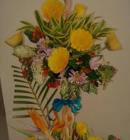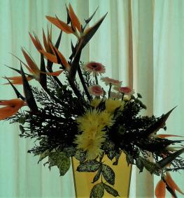 OPCH108- Topiary style arrangement for hallway/ wall decor (Rekaan topiary dengan daisi gerbera dan bird of paradise) SHIP TO MALAYSIA ONLY
