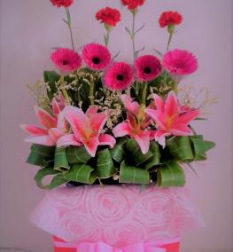 OPCH110- A parallel vertical floral combination of pink colour shades (Gubahan garis guna carnation dan daisi gerbera) SHIP TO MALAYSIA ONLY