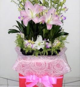 OPCH111-For small scale opening ceremony/function room corner decor (Gubahan garis dengan lily dan daisi gerbera))